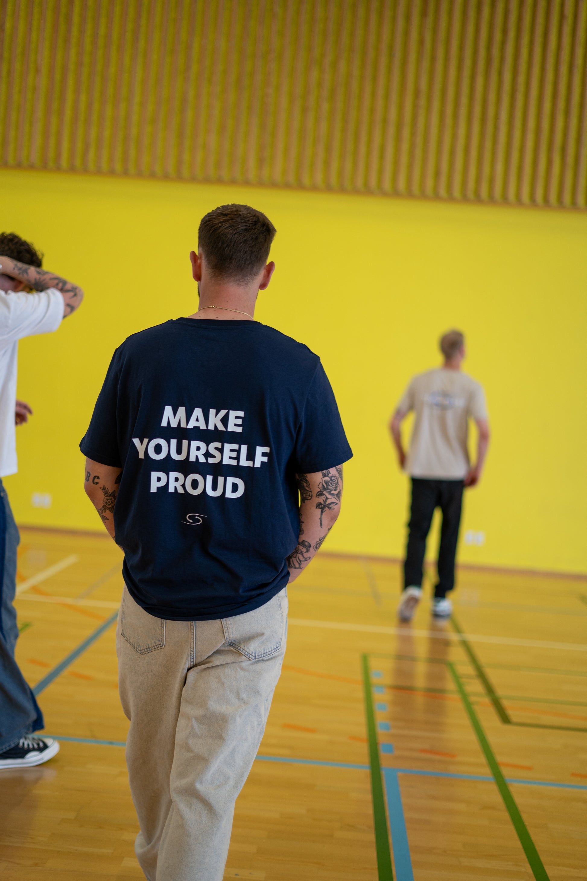 "Make Yourself Proud" quote t-shirt in french navy made from 100% organic cotton with a regular fit and seamless quality.